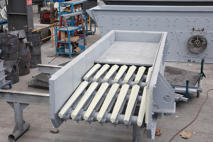 O equipamento adota o excitador de vibração dupla do eixo excêntrico, que tem o desempenho estável e força; as barras de grade tipo escada de apoio de duas seções tornam o material de alimentação mais rápido e mais suave, aumentando muito a capacidade de alimentação do equipamento.
