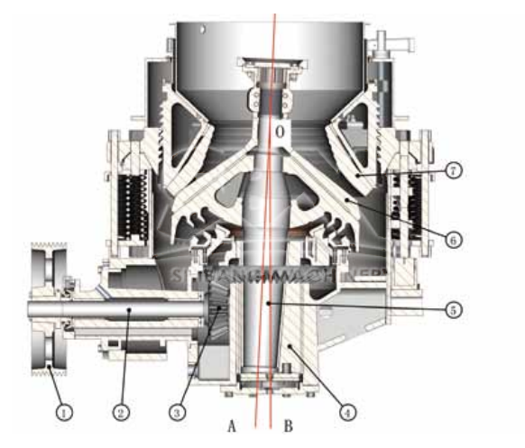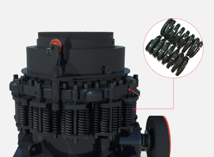 A razão pela qual o britador cônico de mola da série CS se torna o mais utilizado no país e no exterior é a sua confiabilidade sob várias condições de trabalho; A série CS reserva substancialmente suas estruturas clássicas, como dispositivo de segurança de molas, eixo principal de grande diâmetro, cremalheira pesada e selo de óleo seco, que garantem a confiabilidade do equipamento em sua maior extensão. O britador cônico de mola de alta eficiência da série CS tem dois tipos, ou seja, tipo padrão e tipo de cabeça curta; cada tipo de triturador está equipado com múltiplas cavidades, de modo que é adequado para os requisitos de operação de britagem intermediária e trituração fina de materiais de várias rigidezes. Um grande número de aplicações práticas mostram que o britador cônico de mola de alta eficiência da série CS apresenta excelente desempenho quando usado em operações de britagem intermediárias. O triturador cônico CS é equipado com sistema de lubrificação hidráulica, através do qual o usuário deste sistema pode facilmente completar o ajuste de abertura de descarga do equipamento e as operações de limpeza da cavidade do equipamento, simplificando assim as operações diárias do triturador cônico. Além disso, este sistema adota estação de óleo lubrificante para sistema de refrigeração elétrica, que pode realizar o controle automático da estação de lubrificação e garantir a lubrificação e resfriamento durante o processo de operação do equipamento. Para evitar o bloqueio, sobrecarga ou outras emergências que ocorrem no britador quando o bloco de ferro ou outros materiais não-triturados entram na cavidade de britagem, instalamos 16 conjuntos de molas de aço de liga de alto desempenho ao redor do britador cônico CS; o sistema de proteção contra sobrecarga centrado no conjunto de molas pode efetivamente garantir a segurança do britador.